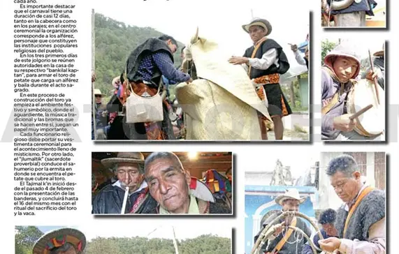 En los tres primeros días de este jolgorio se reúnen autoridades en la casa de su respectivo “bankilal kaptan”, para armar el toro de petate que carga un alférez y baila durante el acto sagrado.