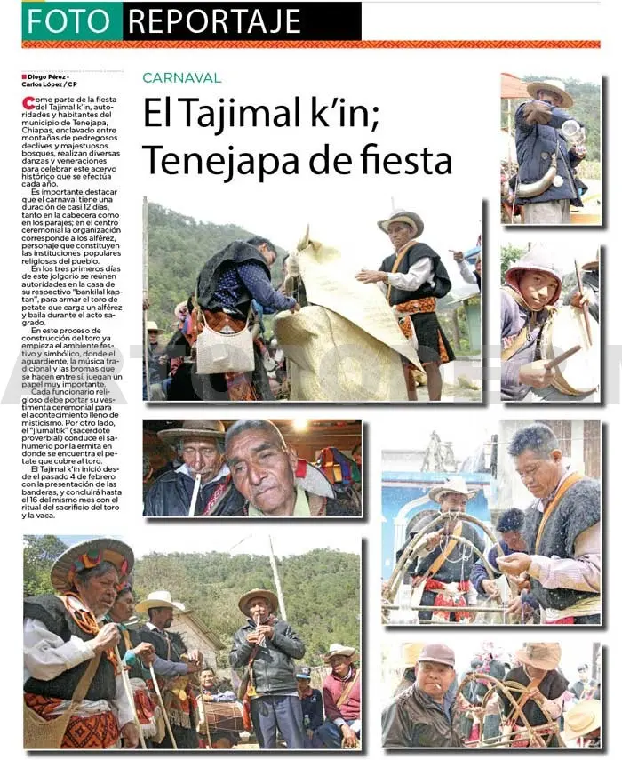 Como parte de la fiesta del Tajimal k’in, autoridades y habitantes del municipio de Tenejapa, Chiapas, enclavado entre montañas de pedregosos declives y majestuosos bosques, realizan diversas danzas y veneraciones para celebrar este acervo histórico que se efectúa cada año.