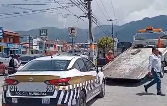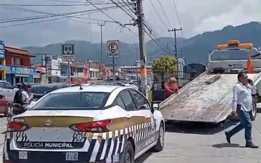 Personal de Tránsito Municipal de San Cristóbal infraccionó a un elemento de vialidad pero del municipio de Zinacantán, por estacionar su unidad en un área prohibida.