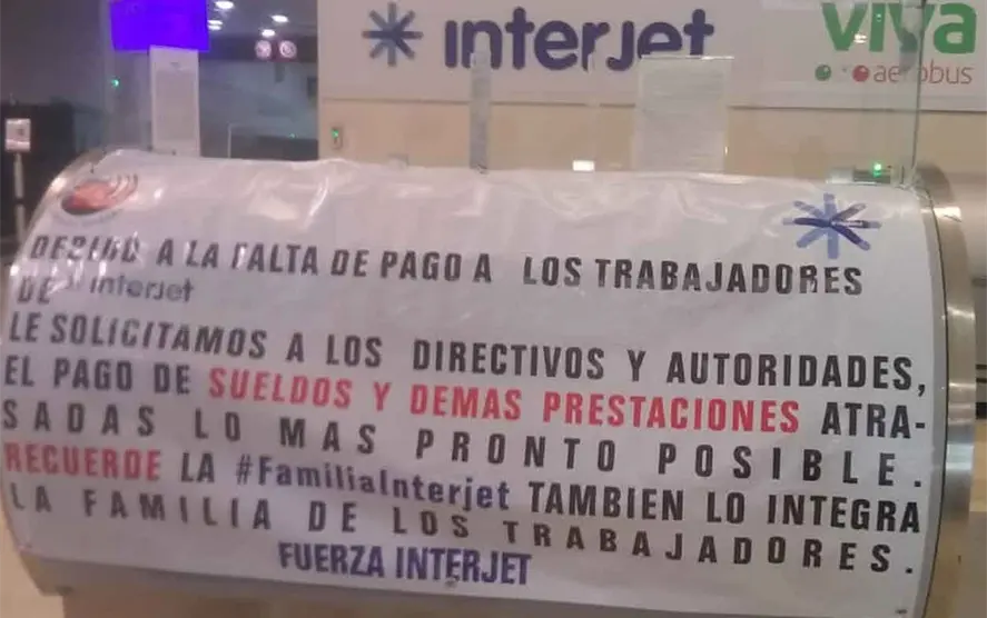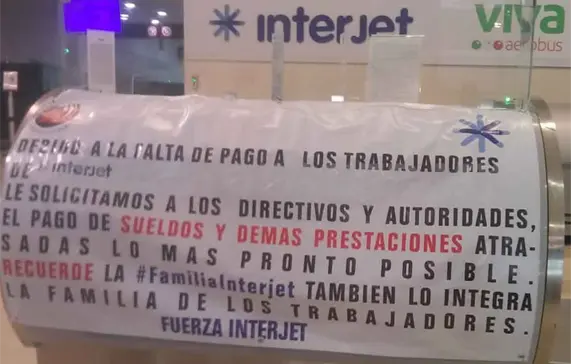 Los agraviados colocaron una lona en el mostrador de la aerolínea, al interior del aeropuerto “Ángel Albino Corzo”, donde se podía ver la siguiente leyenda: “Debido a la falta de pago a los trabajadores de Interjet, solicitamos a los directivos y autoridades el pago de sueldos y demás prestaciones atrasadas lo más pronto posible; recuerde, la familia Interjet también la integran las familias de los trabajadores”.