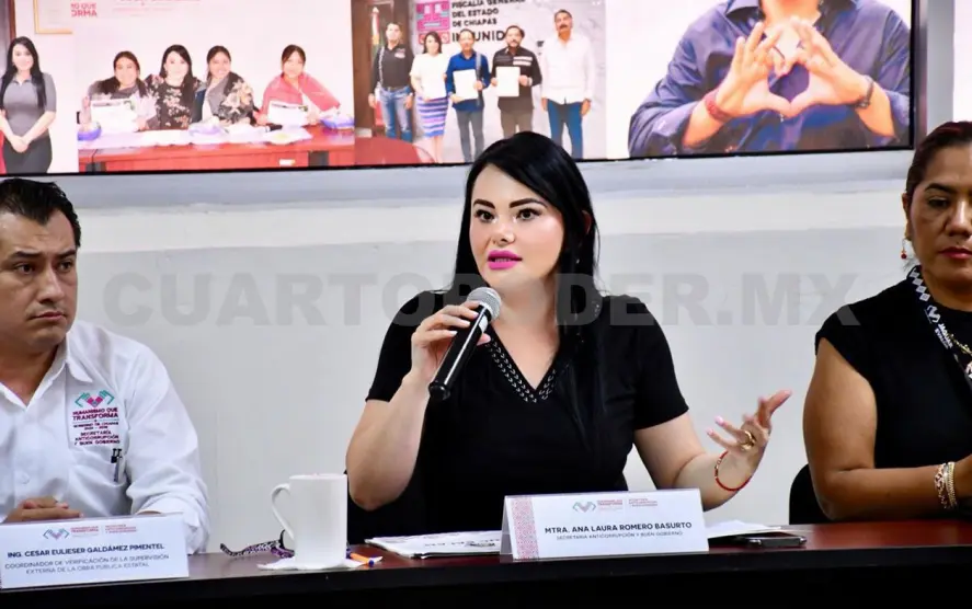 El acto se realizó en la Sala Anticorrupción contando con la presencia de César Eulieser Galdámez Pimentel, coordinador de Verificación Externo de la Obra Pública Estatal y del gremio constructor, así como de Tania Lucía Vila Cisneros, jefa de Área de Desarrollo de Sistemas.