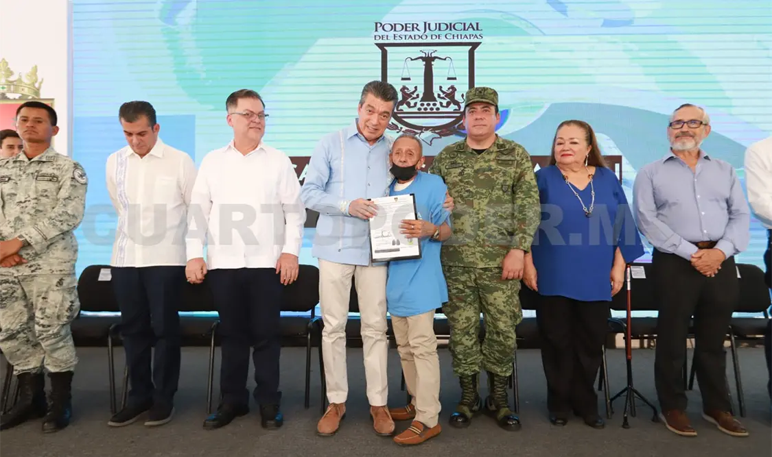 “Somos testigos de un acto más de justicia de la labor humanista de la Mesa de Reconciliación a favor de las personas privadas de su libertad, tal como se inició aquel 9 de mayo del 2013, dando pauta a que en Chiapas se continúe fortaleciendo estos trabajos para cambiar historias de vida. Hoy quienes reciben una segunda oportunidad tendrán las herramientas para tejer una nueva historia, por lo que les pido que la conserven y valoren con responsabilidad”, manifestó.