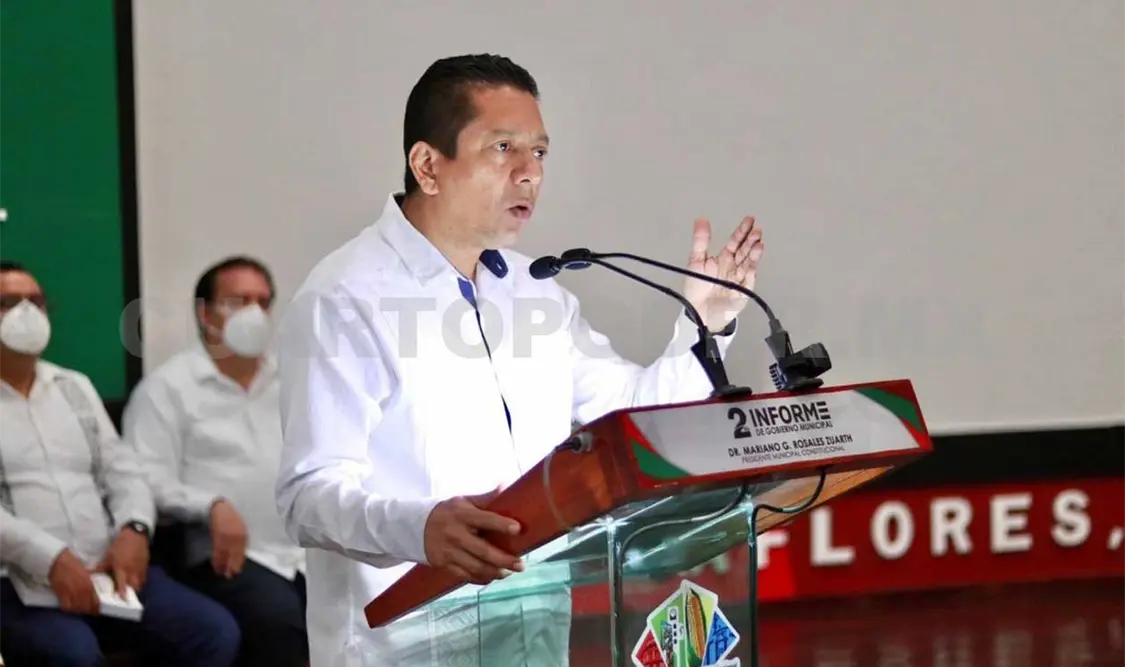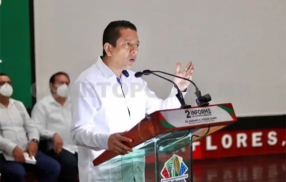 El fiscal general Jorge Llaven Abarca asistió como invitado de honor al Segundo Informe de Gobierno del presidente municipal de Villaflores, Mariano Rosales Zuarth, que se realizó en el auditorio del Centro Cultural de la Rial Academia de la Lengua Frailescana, donde hizo un llamado respetuoso a las y los presidentes municipales para que fortalezcan su participación en las Mesas Regionales de Seguridad, destacando que hoy en Chiapas hay un gobierno humanista y cercano a la gente.