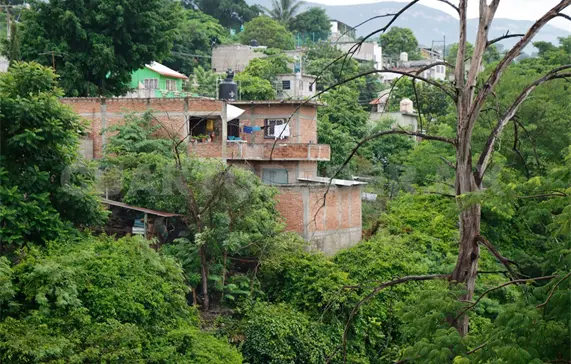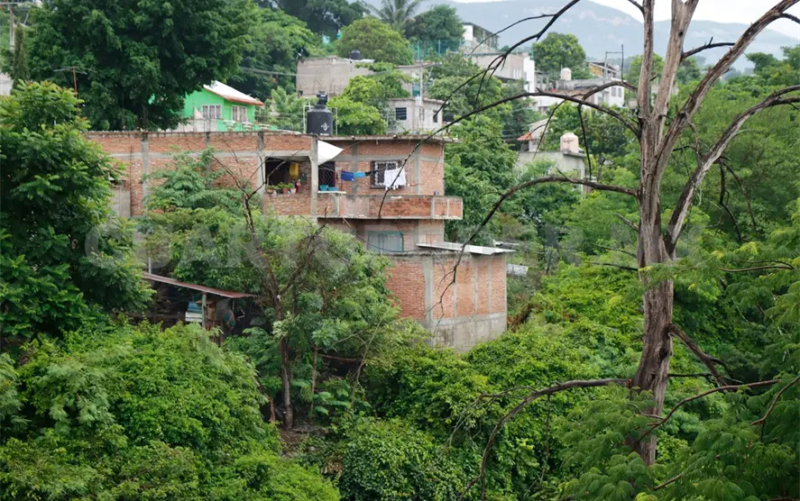 Casas construidas hace años atrás a orillas del río Sabinal, sobreviven a los impactos de las crecientes de este afluente que cruza la ciudad de Tuxtla Gutiérrez, principalmente en temporada de ciclones y huracanes.