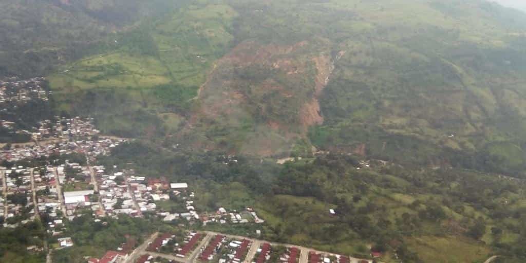 Personal de la Secretaría de Protección Civil del Gobierno de Chiapas y del Centro Nacional de Prevención de Desastres (Cenapred) identificaron, a través de un sobrevuelo, un deslizamiento de ladera sobre el río La Sierra en las inmediaciones de la comunidad Nueva Esperanza en el municipio de Ixhuatán. Dicho fenómeno es parte de los efectos ocasionados por las lluvias del Frente Frío número 11 y la Tormenta Tropical Eta y representa un riesgo para la población.