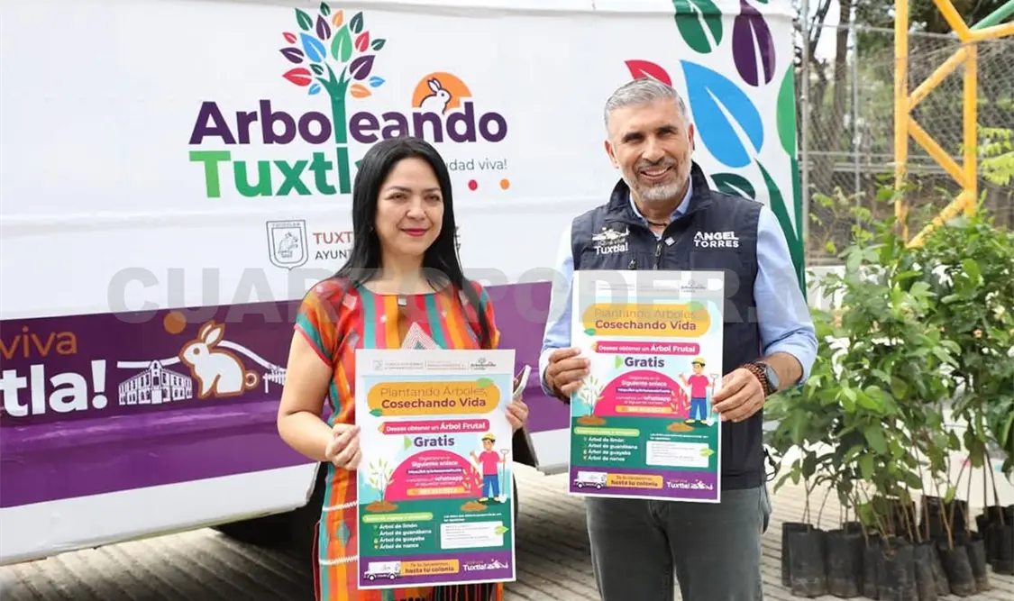 El presidente municipal de Tuxtla Gutiérrez, Ángel Torres, puso en marcha la campaña “Arboleando: Plantando Árboles, Cosechando Vidas”, una iniciativa que consiste en la entrega de árboles frutales a las familias tuxtlecas, a través de una unidad móvil que recorrerá colonias, ejidos, barrios y fraccionamientos.