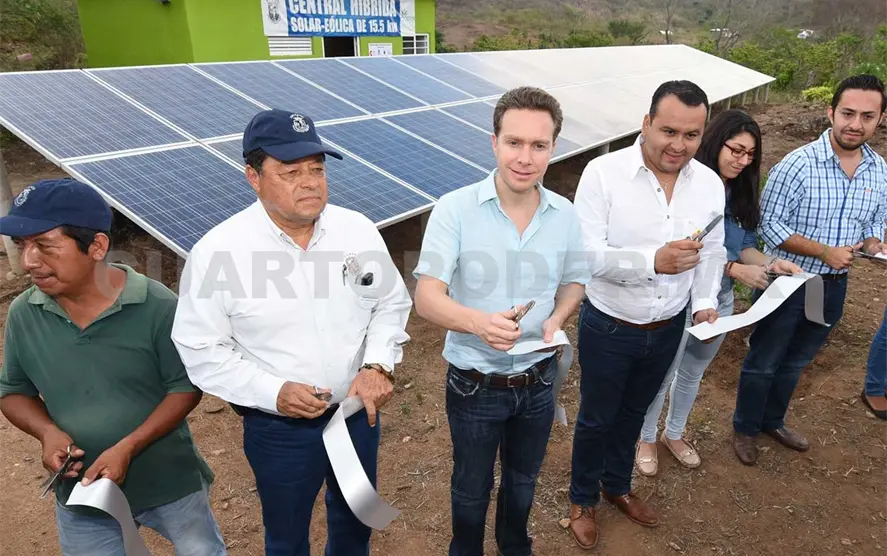 El gobernador Manuel Velasco Coello puso en marcha la nueva localidad solar en Villa del Río, del municipio de Cintalapa, convirtiéndose en la primera comunidad híbrida de México que utiliza energía renovable y limpia proveniente del sol y del aire.