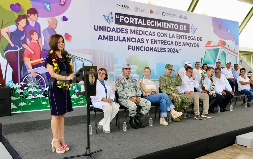 “Trabajamos precisamente para que ayudemos a todas y todos sin ninguna distinción, sin ninguna condición y por el bien de todos, primero los pobres; entonces, hasta donde se pueda, seguiremos atendiendo las necesidades más importantes del pueblo de Chiapas”, dijo al referir que hoy se entregan lentes, sillas de ruedas, andadoras, bastones y ambulancias para hacer traslados más efectivos de las y los pacientes.