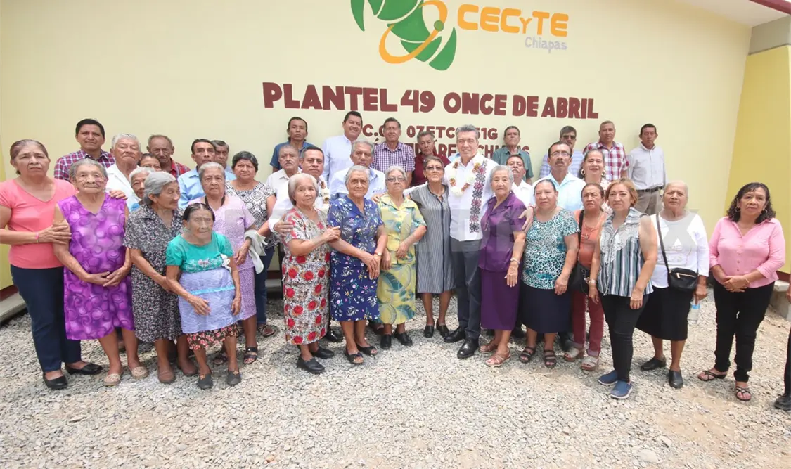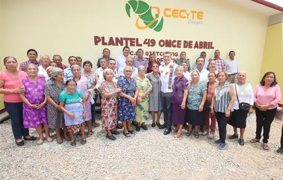 El gobernador Rutilio Escandón Cadenas visitó el ejido 11 de Abril, en el municipio de Unión Juárez, donde se desarrollan diversas acciones para el fortalecimiento de los espacios escolares que garanticen el proceso enseñanza-aprendizaje de la comunidad educativa del Colegio de Estudios Científicos y Tecnológicos (Cecyte), plantel 49.