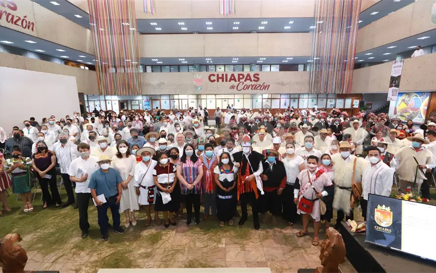 En Palacio de Gobierno, el mandatario reconoció el esfuerzo que han hecho las y los integrantes de las comunidades indígenas para que se mantengan las lenguas y tradiciones pues, dijo, en Chiapas el espíritu del mundo maya se siente y se respira gracias a las culturas ancestrales, sus principios y valores; por ello exhortó a preservar esa herencia y el mensaje de fraternidad, de búsqueda de desarrollo y de bien común.