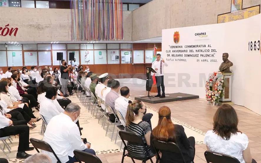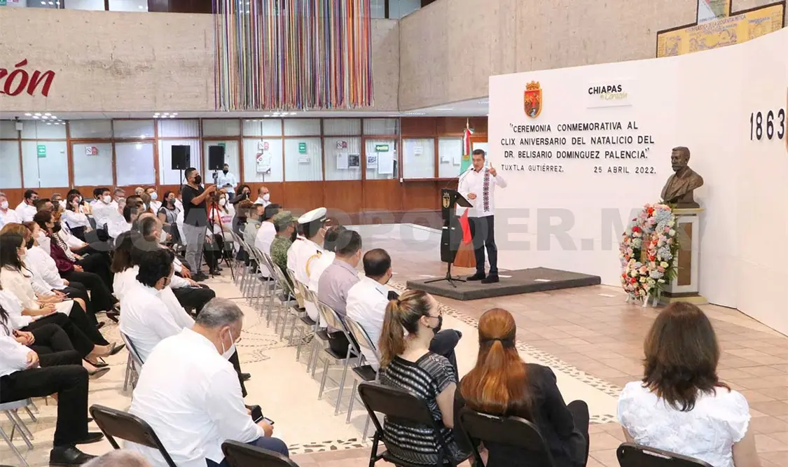 “Don Belisario Domínguez fundó causas y nos dio principios que hoy tenemos que honrar. Esos valores son ejemplo de heroísmo que sigue modelando el pensamiento y acción de los que queremos y amamos a nuestra patria; están presentes en la Cuarta Transformación de los gobiernos estatal y federal, y nos guían e inspiran para construir un Chiapas mejor”, finalizó.