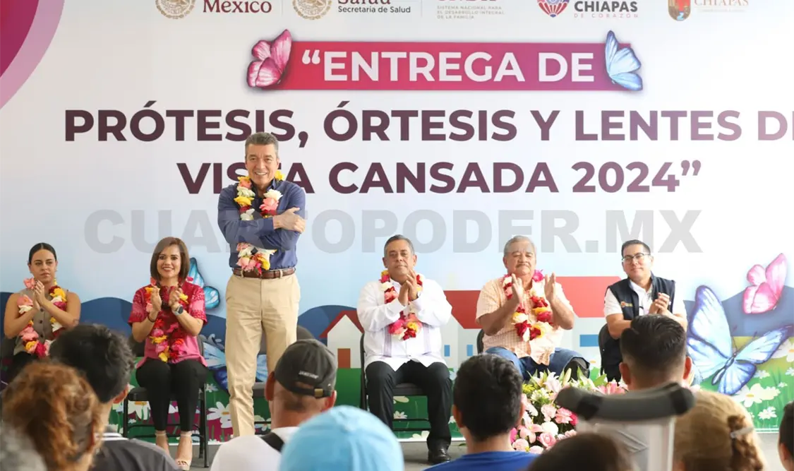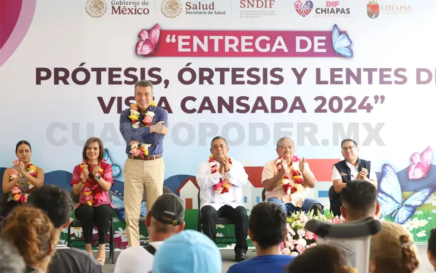 Al encabezar la entrega de prótesis, órtesis y lentes de vista cansada 2024, el gobernador Rutilio Escandón Cadenas destacó que, en esta administración, el Sistema DIF Chiapas se recuperó para cumplir con su objetivo primordial, que es brindar atención a quienes más lo necesitan, como son las personas con discapacidad que hoy reciben apoyos que les permitirán una mayor inclusión social.