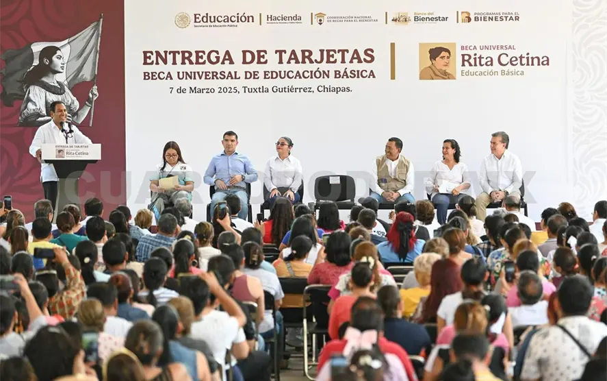 Por su parte, el titular de la Oficina de Representación de Becas para el Bienestar en Chiapas, Marcelo Toledo Cruz, resaltó que la Beca Universal Rita Cetina refleja el compromiso de la presidenta Claudia Sheinbaum con la educación, pues contribuye a que niñas, niños y adolescentes continúen con sus estudios y cumplan sus sueños. Detalló que está dirigida a estudiantes de educación básica y consiste en un beneficio de mil 900 pesos bimestrales por familia, con un apoyo adicional de 700 pesos por cada estudiante extra.