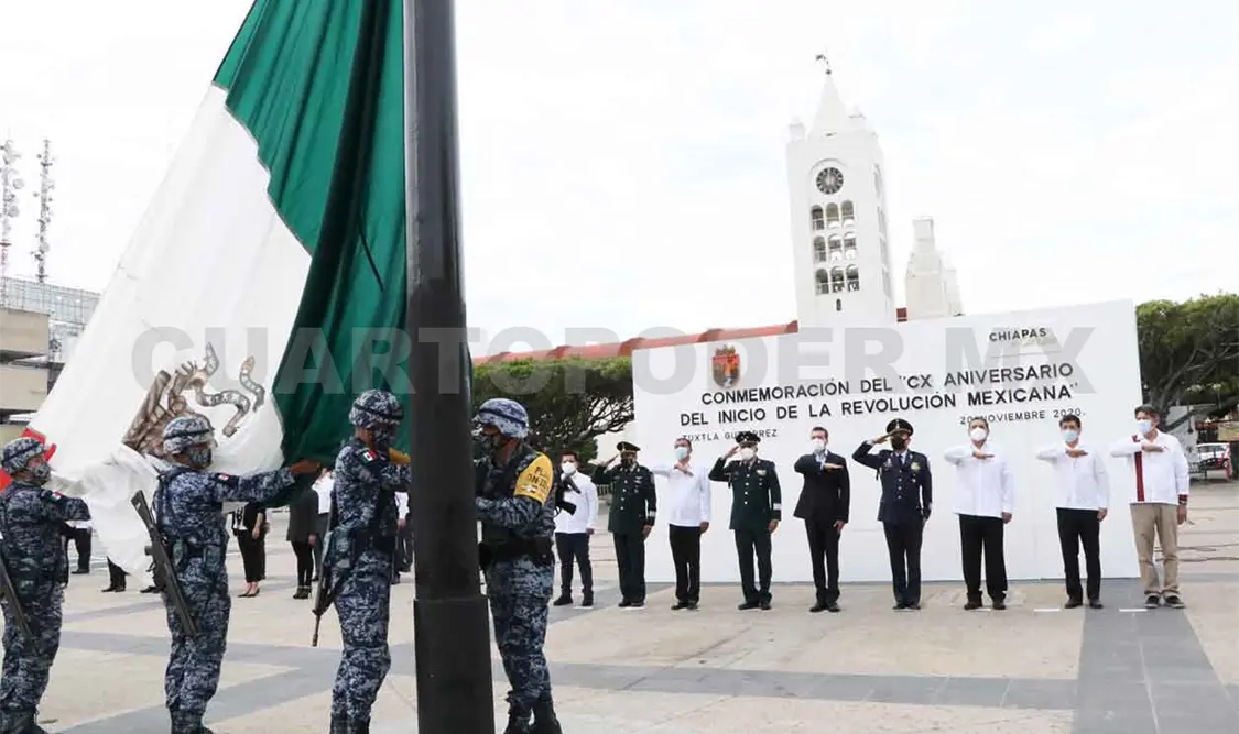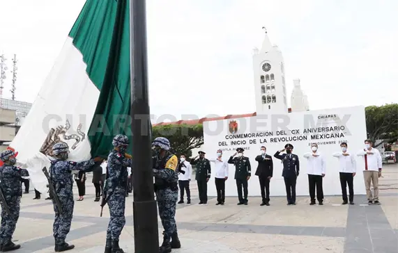 El gobernador Rutilio Escandón Cadenas encabezó la ceremonia de izamiento de la bandera a toda asta con motivo el CX aniversario del inicio de la Revolución Mexicana, para recordar y honrar a los héroes y heroínas de este movimiento que transformó al país.