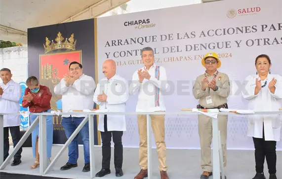 Durante el arranque de las acciones para la prevención y el control del dengue y otras arbovirosis, el gobernador Rutilio Escandón Cadenas destacó que gracias a las inversiones en materia de salud, al trabajo conjunto entre autoridades federales, estatales y municipales, a las estrategias preventivas y a la labor de las brigadas que recorren casa por casa, aunado a la participación ciudadana, Chiapas se mantiene entre los estados con menos incidencia en casos de dengue a nivel nacional.
