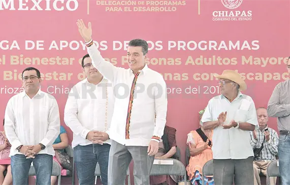 “Este primero de diciembre el presidente Andrés Manuel López Obrador cumple su primer año de encabezar el Gobierno de la República y ya se ve el cambio, la gente se ve contenta porque se le hace justicia”, expresó el gobernador Rutilio Escandón Cadenas durante la entrega de los programas Pensión para el Bienestar de las Personas Adultas Mayores y de las Personas con Discapacidad, a mil 662 habitantes de Berriozábal.
