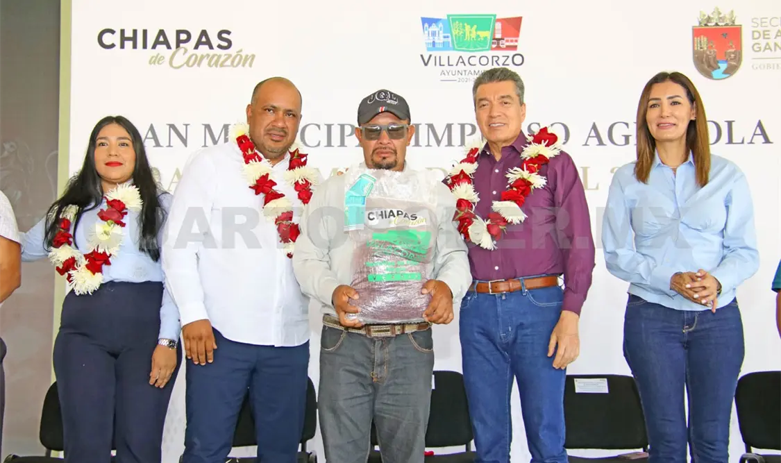 El alcalde de Villa Corzo, Robertony Orozco Aguilar, reconoció la voluntad política del gobernador Rutilio Escandón al impulsar acciones a favor del desarrollo del campo en este municipio, toda vez que —gracias a su gestión— se ha logrado incrementar de 20 a 35 toneladas de semillas de frijol para la siembra en mil 200 hectáreas, en beneficio de cinco mil productores, a espera de que para el 2024 se aumente a 10 mil campesinos atendidos.