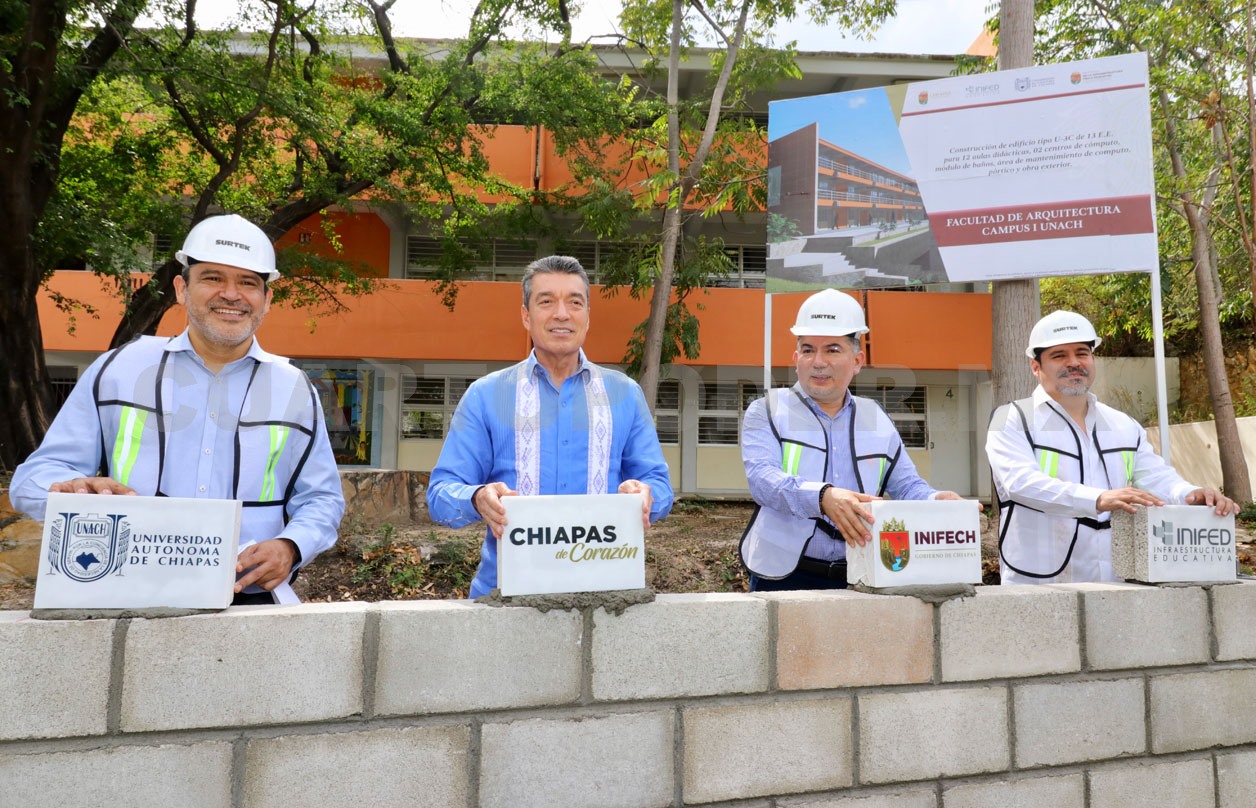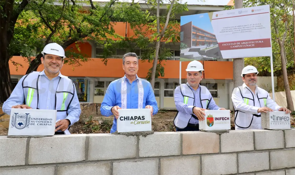 A su vez, el director general del Instituto de Infraestructura Física Educativa del Estado de Chiapas (Inifech), Enoc Gordillo Argüello, informó que para este proyecto se destinan 29.5 millones de pesos para la Facultad de Arquitectura, Campus Tuxtla Gutiérrez, y 21.6 millones para la Facultad de Medicina Humana, en Tapachula, al tiempo de destacar que se trabaja en obras de tres facultades más, lo que garantiza espacios más seguros y confiables para la comunidad estudiantil.