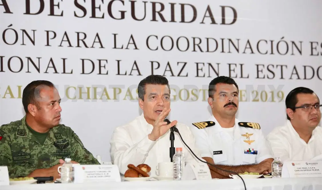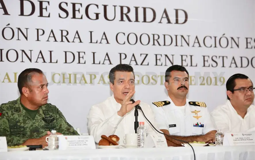 El secretario Técnico de la Mesa de la Coordinación Estatal de Construcción de la Paz en Chiapas, José Francisco Trujillo Ochoa, dio a conocer que, a la fecha, en esta región no se tiene registro de casos sobre homicidios culposos, secuestros ni feminicidios, sólo robo de vehículos. A la par, el delegado de la Fiscalía General de la República en Chiapas, Alejandro Vila Chávez, reportó sobre la detención de traficantes de personas en Tuxtla Gutiérrez, Tapachula y Comitán de Domínguez, logrando el rescate de 39 migrantes.