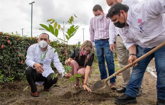 La presidenta municipal de Tapachula, Rosa Irene Urbina Castañeda, presidió el inicio de la reforestación de áreas verdes del Hospital de Alta Especialidad Ciudad Salud, con el que se pretende promover la restauración ecológica.