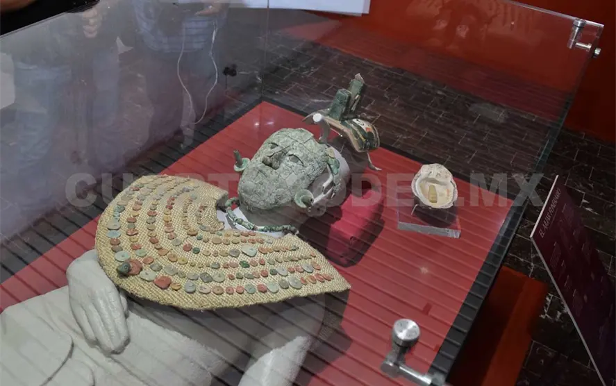 Es importante mencionar que el ajuar prehispánico de la Reina Roja consta de la máscara, diadema, collar, pectoral, tocado, concha y figurilla.