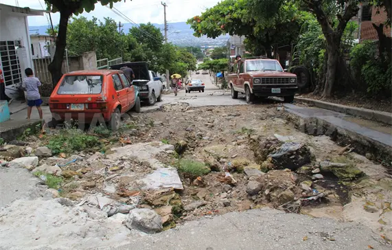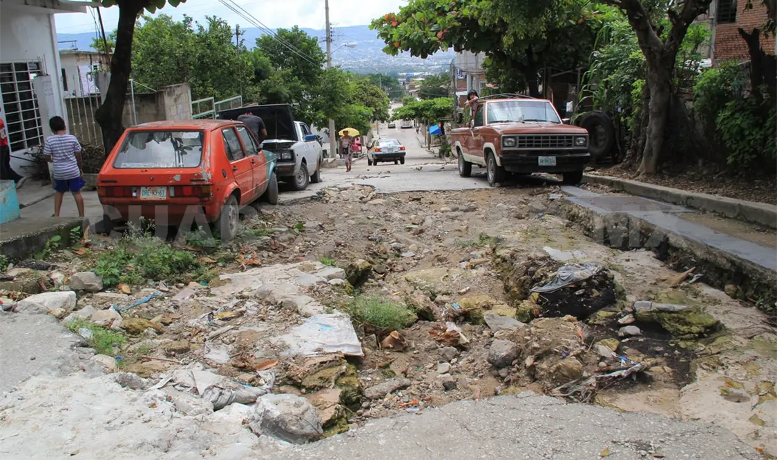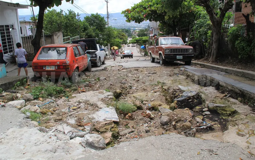 En la parte alta de la colonia Arroyo Blanco, al norte oriente de la capital chiapaneca, se puede observar un gran bache que abarca gran parte de la calle y dificulta el libre tránsito hacia los andadores ubicados en la zona.