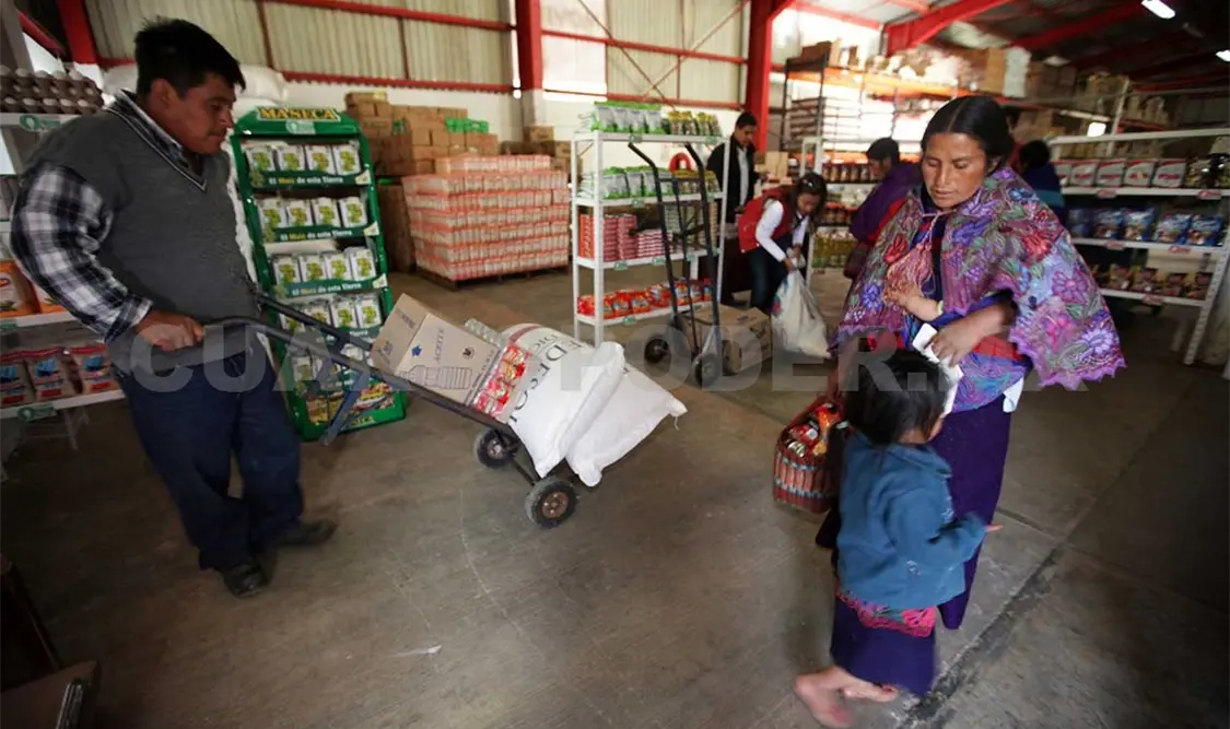 Once toneladas de maíz, mil 100 kilogramos de arroz, igual cantidad de frijol y 220 kilogramos de azúcar se distribuyen entre las 110 familias beneficiadas en la zona indígena mam.