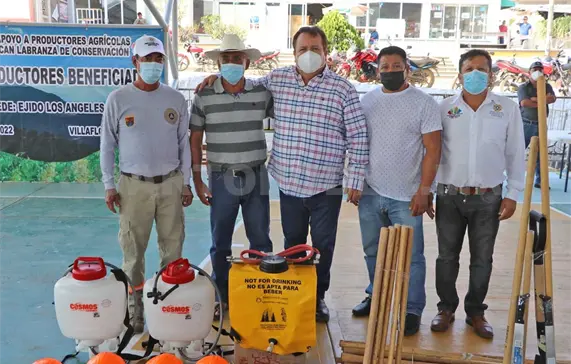 Mariano Rosales recordó que desde 2018 ha cumplido su compromiso de invertir recursos al campo villaflorense, que se está cumpliendo con los compromisos contraídos, “hoy arrancamos con la entrega de herramientas, equipo e insumos agrícolas para la prevenir incendios forestales”.