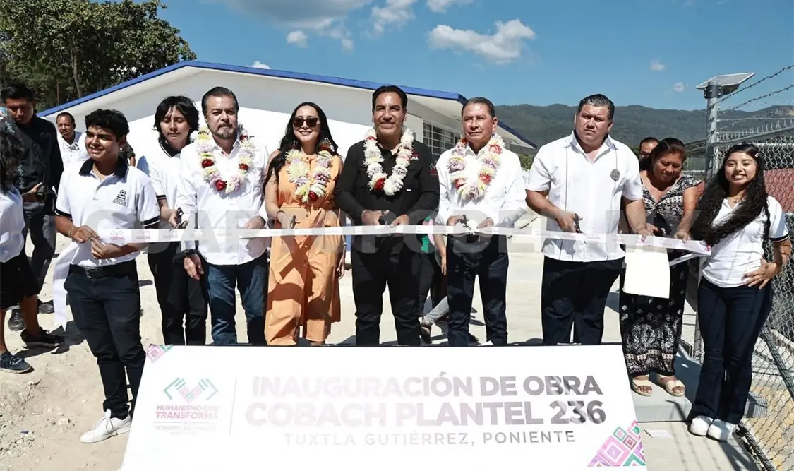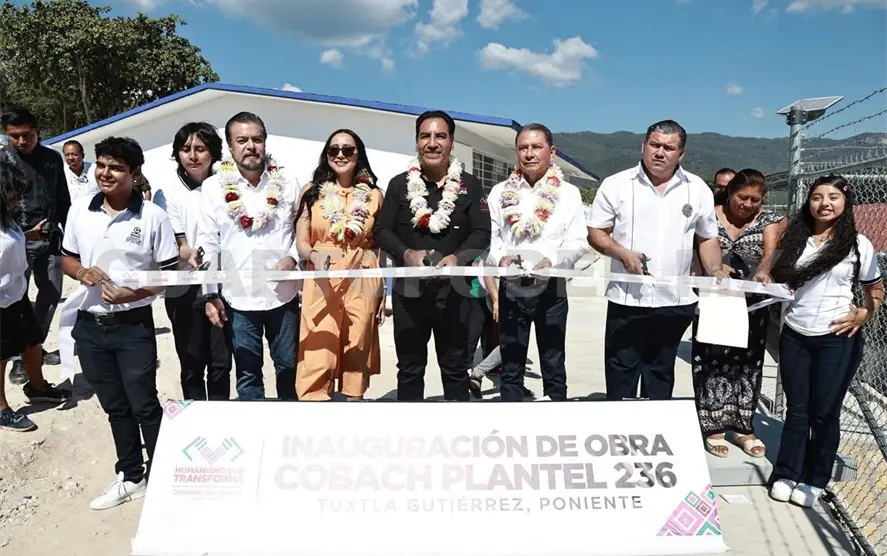 El gobernador Eduardo Ramírez Aguilar inauguró aulas didácticas y obras exteriores en el Colegio de Bachilleres de Chiapas (Cobach) Plantel 236, en Tuxtla Gutiérrez, con una inversión superior a 2.2 millones de pesos (mdp). En este acto, reiteró el compromiso del Gobierno de la Nueva ERA de fortalecer la infraestructura educativa, con el fin de garantizar espacios escolares dignos y de calidad.
