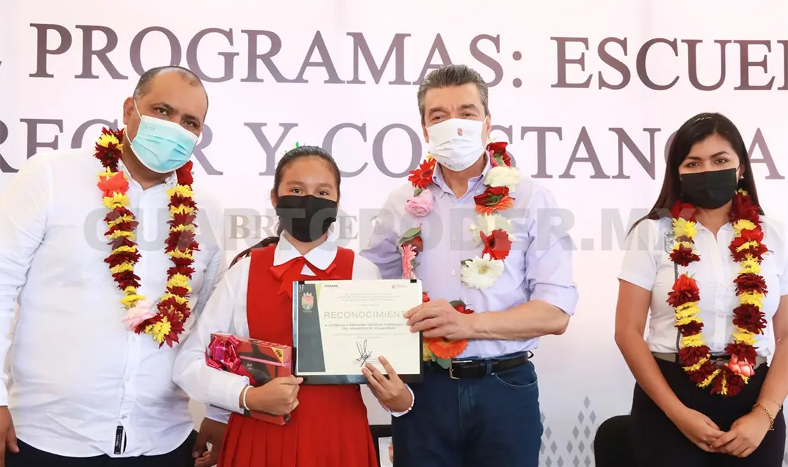Durante su visita a este municipio de la región Frailesca, el mandatario también otorgó tabletas electrónicas pertenecientes al Programa Escuela con Valores. Allí resaltó que la finalidad es mejorar integralmente el uso de las tecnologías entre la niñez y juventud chiapaneca, así como promover el aprendizaje de valores, prevenir factores de riesgo y avanzar en la construcción de una cultura de paz entre la comunidad escolar.