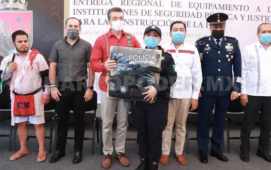 En Chiapas se trabaja con el ejemplo del presidente Andrés Manuel López Obrador, de fortalecer la seguridad pública con infraestructura y dotar de equipamiento y uniformes de calidad, así como mejorar las condiciones laborales de las y las policías