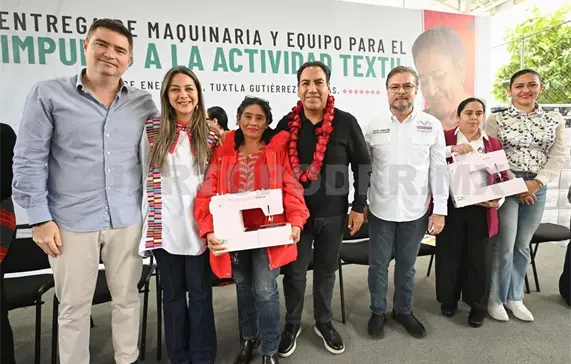 En Tuxtla Gutiérrez, el gobernador Eduardo Ramírez Aguilar encabezó la entrega de maquinaria y equipo para impulsar la actividad textil, acción que forma parte de las políticas del gobierno de la Nueva ERA orientadas al fortalecimiento del bienestar social. En este contexto, destacó que su administración se rige por la filosofía del buen vivir y los principios del humanismo, que colocan a las personas en el centro de la atención pública.