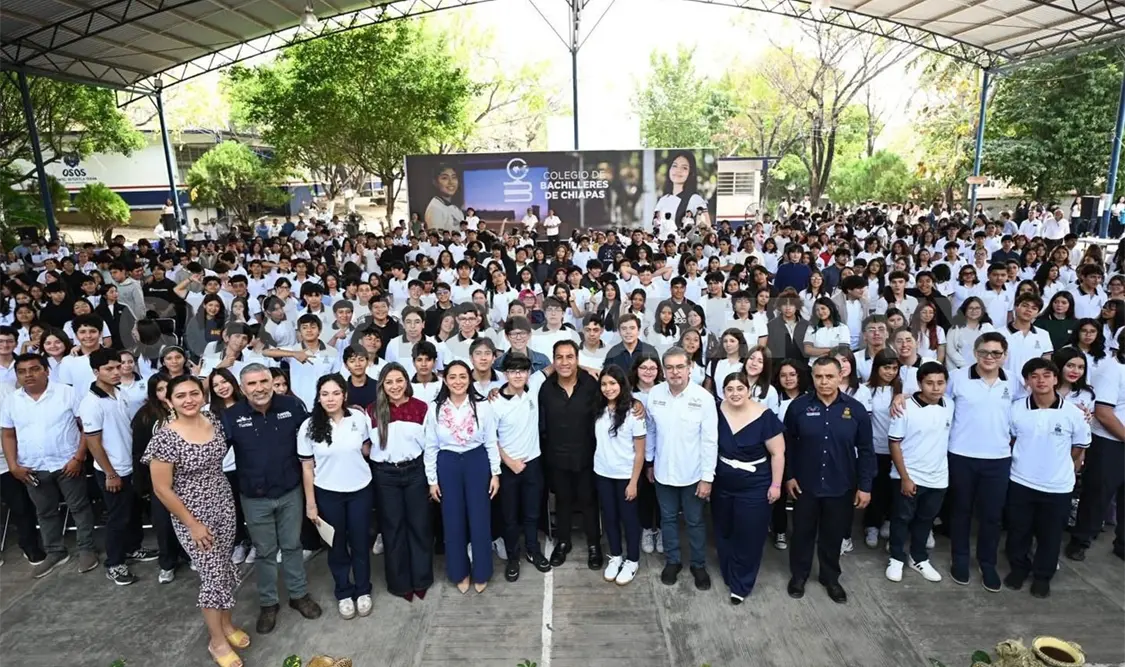 El gobernador Eduardo Ramírez Aguilar encabezó la ceremonia de inicio del Semestre Escolar 2026-B y entregó mobiliario e insumos a planteles de las nueve coordinaciones del Colegio de Bachilleres de Chiapas (Cobach), con una inversión superior a ocho millones de pesos. En este contexto, destacó que el gobierno de la Nueva ERA ha asumido con responsabilidad el fortalecimiento del sector educativo y el respaldo permanente a la juventud chiapaneca.