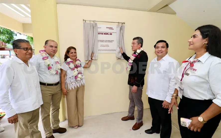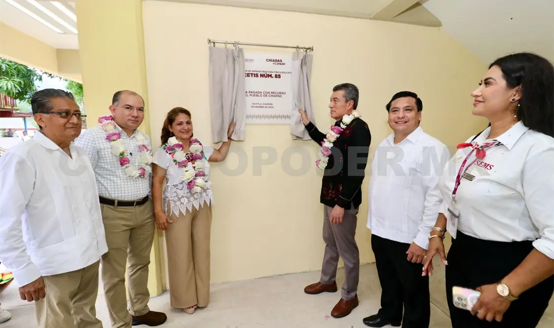 Durante la inauguración de la infraestructura educativa del Centro de Estudios Tecnológicos Industrial y de Servicios (CETIS), Plantel No. 85, del ejido Aquiles Serdán, del municipio de Huixtla, consistente en aulas didácticas y obra exterior, el gobernador Rutilio Escandón Cadenas destacó que, gracias al disciplina financiera que se impulsa en la entidad, se sigue atendiendo al sector educativo para que la niñez y la juventud estudien en espacios seguros y de calidad.
