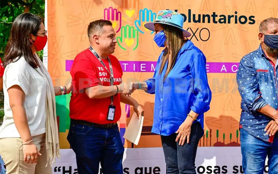 Al recibir los trabajos de rehabilitación de la Escuela Primaria “Octavio Paz”, ubicada en la colonia Antorcha Vivah, realizados por la empresa OXXO, la presidenta municipal Rosa Irene Urbina Castañeda reconoció el trabajo de responsabilidad social de la misma al fomentar mejores espacios en beneficio de la educación.