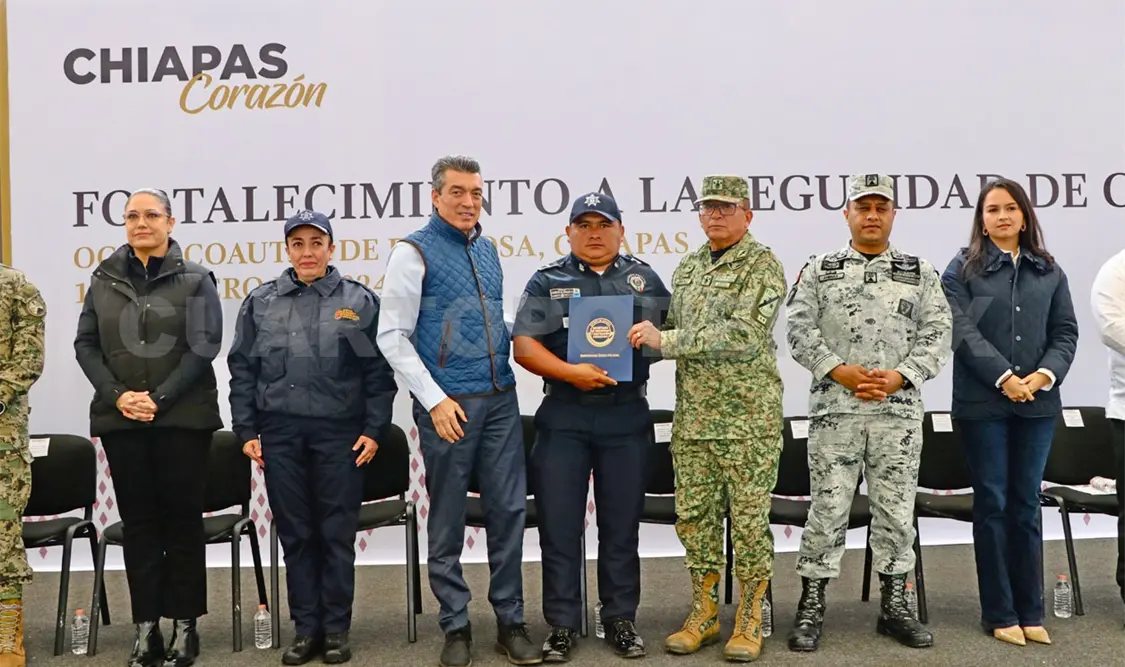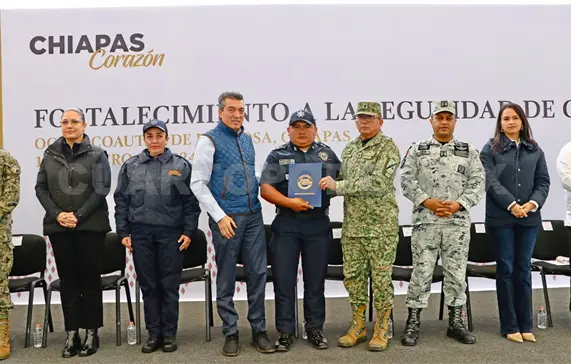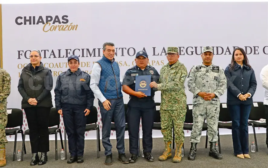 En representación del municipio de Ocozocoautla, Jaurez Nandayapa Ovalle mencionó que además de celebrar la entrega de estas herramientas esenciales para salvaguardar a la población, hoy se hace el reconocimiento al servicio y compromiso de quienes dedican su vida a servir y proteger al pueblo. Indicó que la seguridad es un trabajo en conjunto, por lo que estos recursos suman al momento de construir un Chiapas más seguro y resiliente.