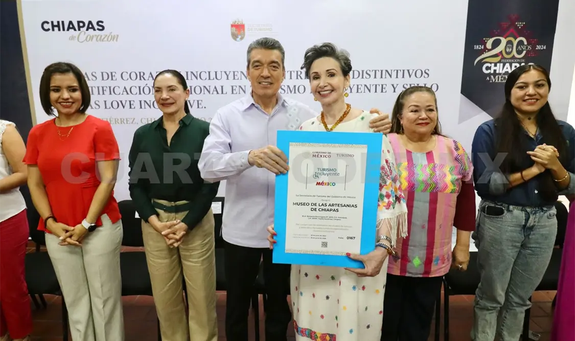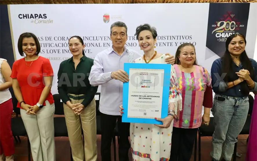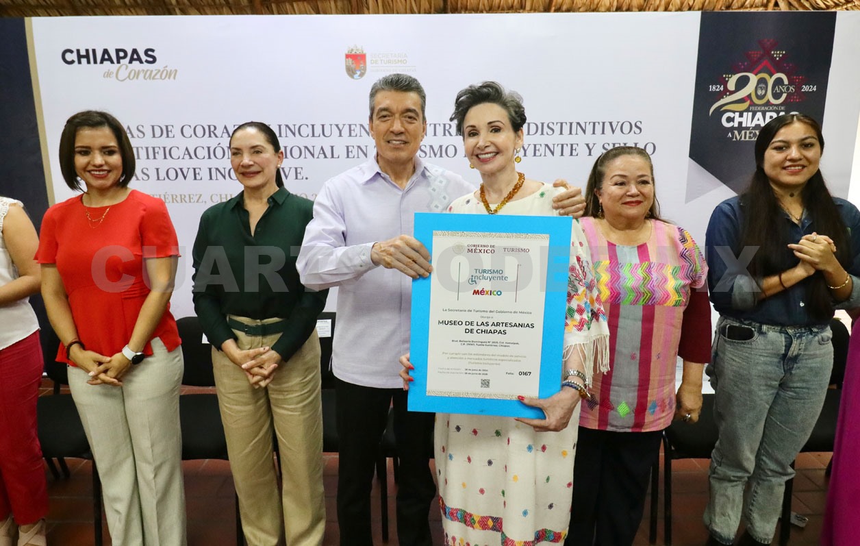 En este marco, el Instituto Casa de las Artesanías de Chiapas recibió el distintivo Turismo Incluyente, por lo que su directora general, María de Lourdes Ruiz Pastrana, apuntó que esto inspira a las dependencias a ser un reflejo de la diversidad y riqueza cultural, y a crear una sociedad encaminada a la inclusión social.