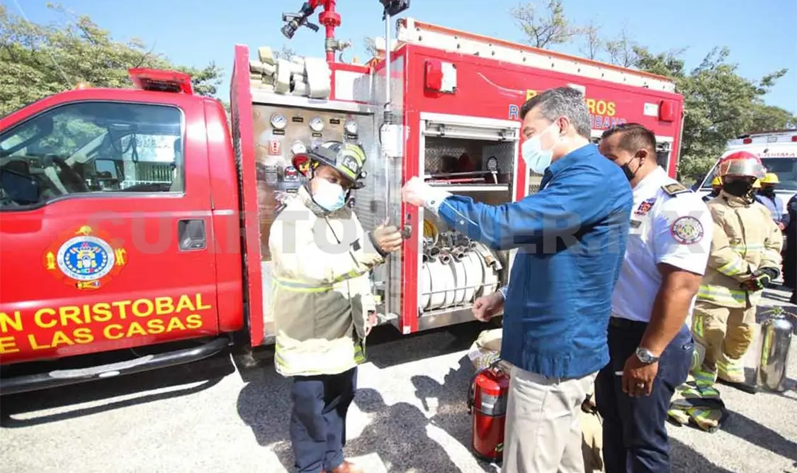 A su vez, el director de Bomberos de Chiapas, Marco Antonio Sánchez Guerrero, agradeció la donación y entrega de los más de mil 888 equipos completos de protección para resguardar la seguridad de las y los bomberos, quienes arriesgan su vida ante cualquier siniestro en la defensa de la integridad de la ciudadanía. Este apoyo, dijo, es muestra clara de la visión humanista del gobernador Rutilio Escandón y del trabajo honesto y eficiente que impulsa a favor de las causas más justas.