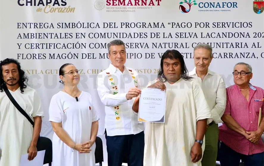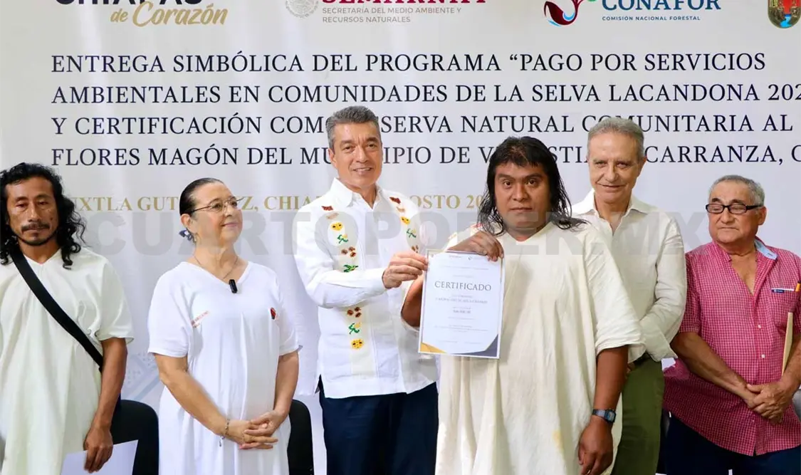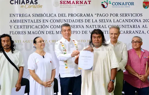 En la entrega de recursos del Programa Pago por Servicios Ambientales en Comunidades de la Selva Lacandona 2024, el gobernador Rutilio Escandón Cadenas reconoció el extraordinario esfuerzo que las mujeres y los hombres lacandones llevan a cabo en la misión de cuidar y conservar el agua, la flora y la fauna de esta gran reserva natural, considerada una de las más importantes de México y del mundo.