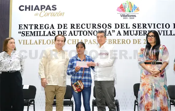 Al encabezar la entrega de recursos del Fondo de Apoyo a la Economía de las Mujeres “Semillas de Autonomía”, a beneficiadas del municipio de Villaflores, el gobernador Rutilio Escandón Cadenas destacó el éxito que esta iniciativa ha logrado a lo largo de la administración, en la dispersión de créditos y financiamientos, así como asesorías y capacitaciones para motivar a las mujeres con el emprendimiento de un negocio propio y así potencializar la economía familiar.