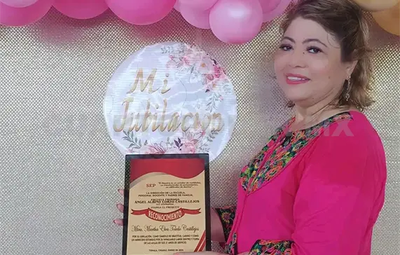 Tras 31 años de haber brindado sus servicios en educación básica, en la Escuela Primaria “Ángel Albino Corzo”, la profesora Martha Elba Toledo Castillejos recibió su constancia de jubilación por parte de las autoridades educativas.