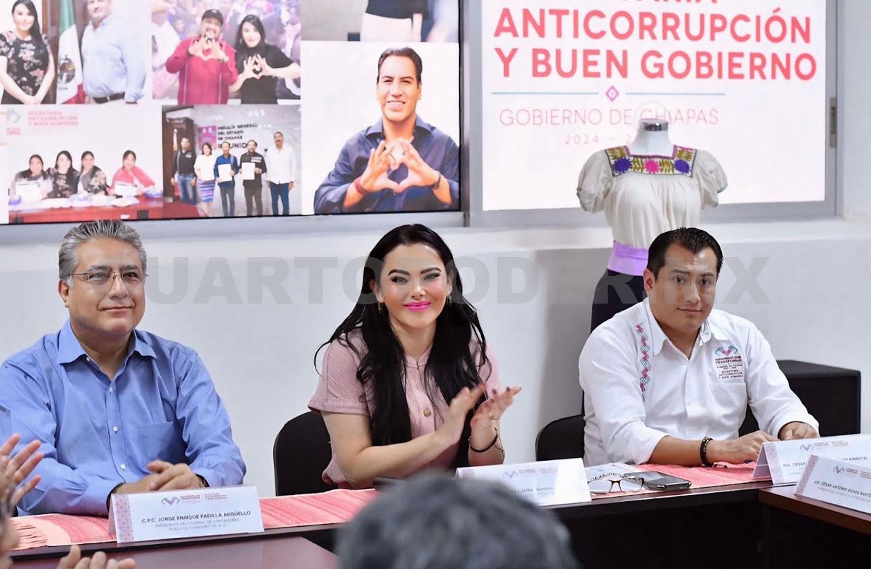 A este acto acudieron Jorge Enrique Padilla Argüello, representante del Colegio de Contadores Públicos Chiapanecos A.C.; César Eulieser Galdámez Pimentel, coordinador de Verificación de la Supervisión Externa de la Obra Pública Estatal, y Noé Fabián Ruiz Velázquez, presidente del Colegio Chiapaneco de Ingenieros Civiles Siglo XXI.