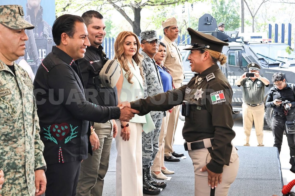 Ramírez Aguilar señaló que su administración realiza un esfuerzo significativo para mejorar los salarios y las prestaciones de las y los policías y de sus familias, con el fin de dignificar su labor y evitar que sean vulnerables a la corrupción. Asimismo, agradeció al Ejército Mexicano, la Marina y la Guardia Nacional (GN) por la coordinación permanente con las instancias estatales y municipales de seguridad y procuración de justicia, en favor del bienestar y la prosperidad del pueblo chiapaneco.