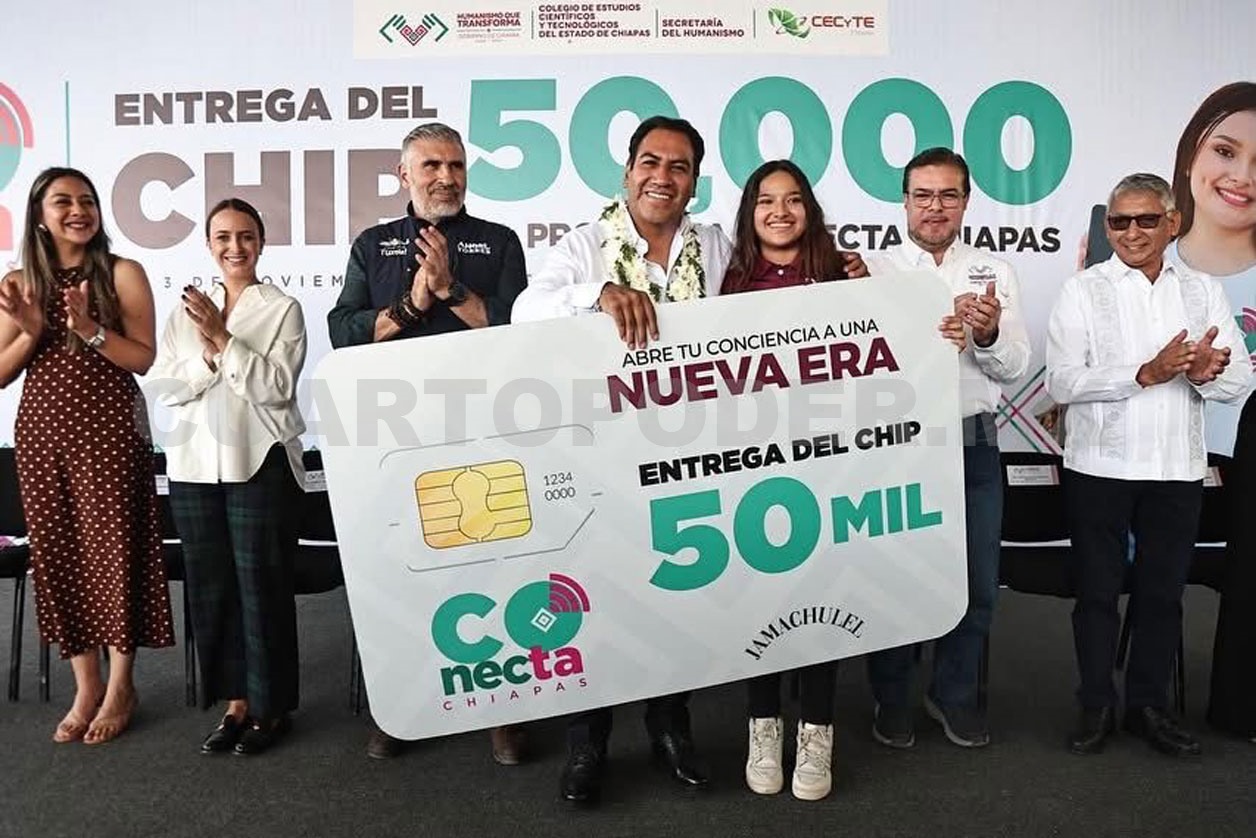 Por su parte, el director general del Colegio de Estudios Científicos y Tecnológicos del Estado de Chiapas (Cecyte Chiapas), Luis Guadalupe Morales Ángeles, señaló que este subsistema ha recibido mil 973 chips del programa, lo que contribuye a una educación más inclusiva, moderna y humana. Reconoció que esta acción impulsa la equidad digital y acerca a la juventud a la ciencia y la tecnología, al tiempo que refleja una convicción clara: “Educar es conectar, y conectar es transformar”.