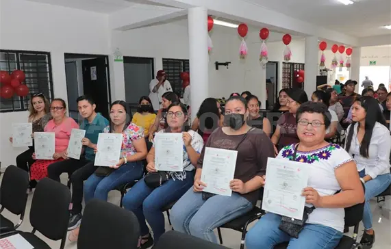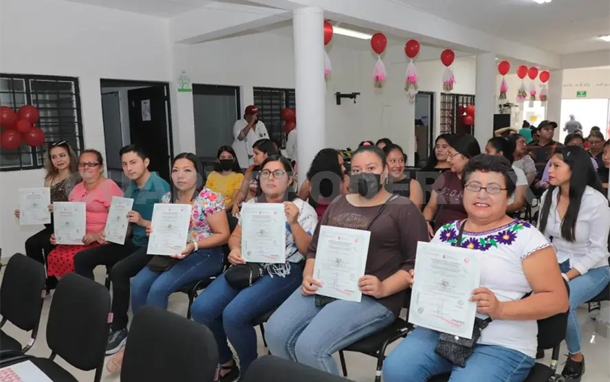 Al respecto, Fabiola Astudillo recalcó a las y los beneficiarios de los cursos que están recibiendo un documento con validez oficial. “Hagan de cuenta que se están graduando de una preparatoria o universidad, de ese valor es la constancia que estamos entregando a cada uno de ustedes, porque lo emite la Secretaría de Educación Pública (SEP), la cual acredita que ustedes ya tienen un conocimiento que pueden utilizar para poner un negocio o iniciar una empresa”.
