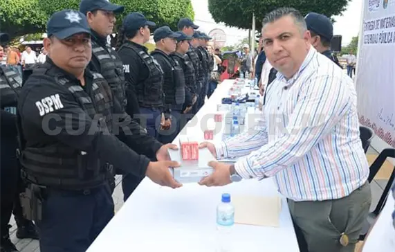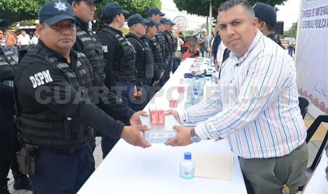 Después de mucho tiempo de gestiones por parte de este gobierno municipal y esperar que se aprobara la licencia para que elementos de la policía municipal pudieran portar armas, finalmente se logró, por lo que este miércoles, la presidenta municipal interina, Guadalupe Méndez Hernández, acompañada del fiscal de distrito norte, José Francisco Gómez Arias, regidores y mandos policiacos realizaron la entrega del armamento y cartuchos útiles al grupo de trece elementos.