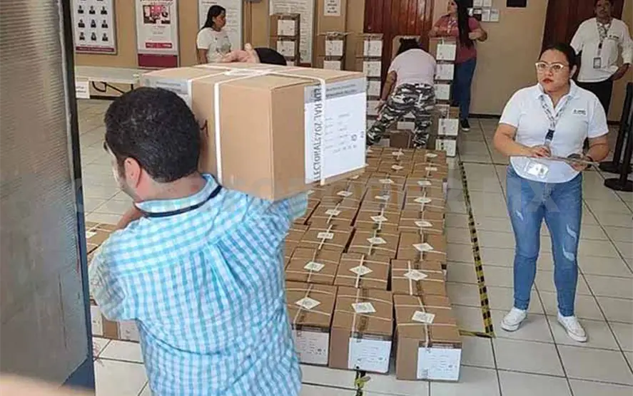 En la paquetería que se entrega se encuentran las boletas electorales federales para presidente, senadores y diputados federales, actas de la jornada, escrutinio, sellos, plantillas braile para las personas con discapacidad visual y material de oficina.