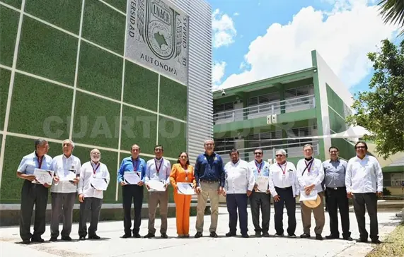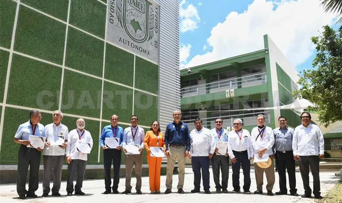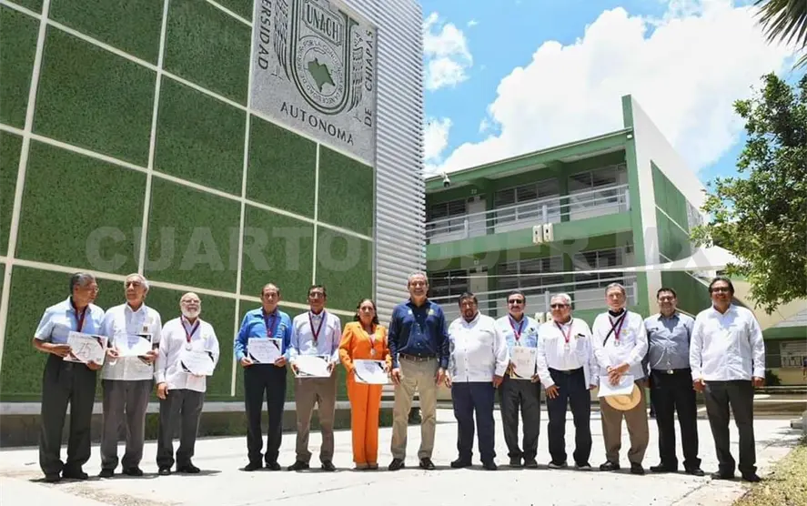 Un grupo de ocho docentes jubilados de la Facultad de Ingeniería de la Universidad Autónoma de Chiapas, recibieron de manos del rector Carlos Faustino Natarén Nandayapa la Medalla de Reconocimiento al “Mérito en el Servicio Universitario por sus años de servicio”, en las instalaciones del auditorio de esta unidad académica.