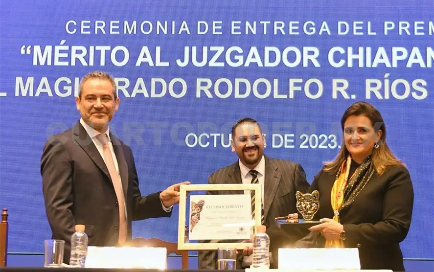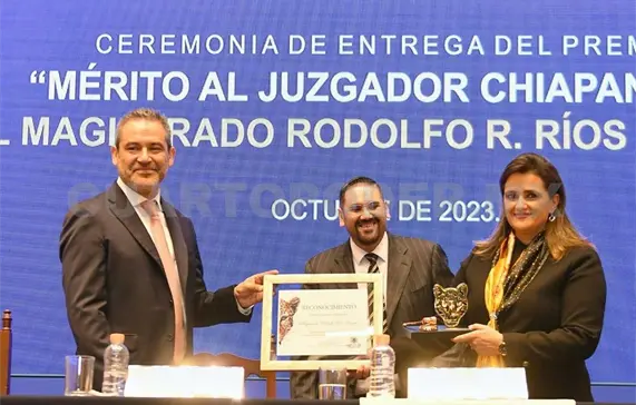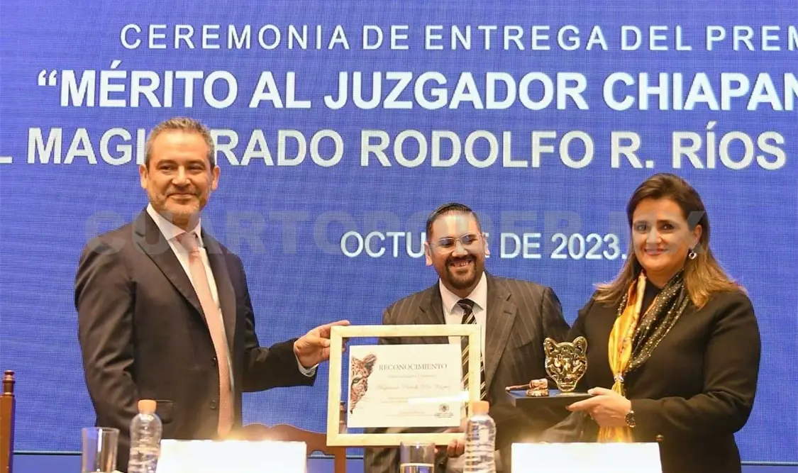 La Coordinación de Jueces de Distrito del Vigésimo Circuito, con residencia en Tuxtla Gutiérrez, entregó de manera póstuma el premio “Mérito al Juzgador Chiapaneco” al magistrado Rodolfo Ricardo Ríos Vázquez.