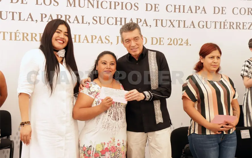 Por parte del Congreso, la diputada presidenta de la Mesa Directiva, Sonia Catalina Álvarez y la diputada presidenta de la Comisión de Igualdad de Género, Paola Villamonte Pérez; además de las beneficiarias: Verónica López Martínez, de Berriozábal; Erika Asaled Pérez Hernández, de Chiapa de Corzo; Margarita Hernández Vázquez, de Ocozocoautla y Gabriela Lizbeth Náfate Cahuaré, de Suchiapa.